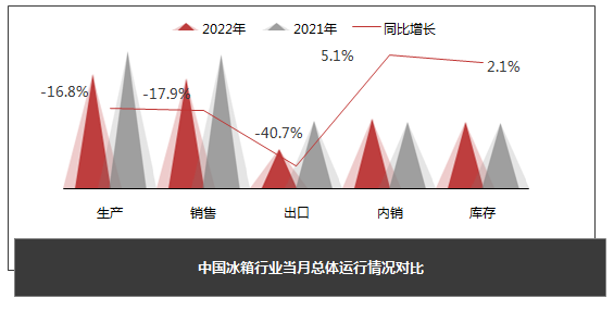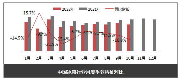 1-10月冰箱總產量為6327.6萬臺,同比下降10.7%;總銷量為6367.4萬臺,同比下降11.2%;總出口量為2973萬臺,同比下降19%;總內銷量為3394.4萬條,同比下降3%。