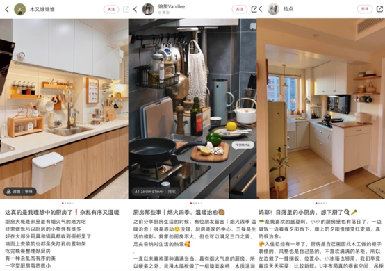 除了借助博主們的影響力強化方太與開敞廚房的關聯印象外,小紅書還與方太在線上招募了小紅書用戶 丁小小成為方太體驗官。在所有用戶的見證下, 丁小小和方太一起從0開始打造自己的夢中情廚,并將整個過程以筆記的方式發布在小紅書平臺。讓作為圍觀者的其他用戶親眼看到了方太產品落地的真實場景,也激發了潛在用戶打造同款方太開敞廚房的想象。