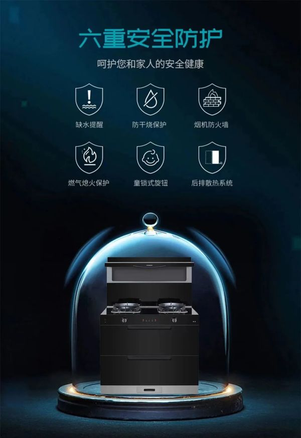 居家生活時,廚房是我們出入較為頻繁的場所。其水電線路最為復雜,安全隱患也是極多!電飯煲、燃氣灶、油煙機等等,電器越多其隱患也在無形之中變多起來。美多消毒柜款集成灶將多種功能集成在了一起,除了以1抵多,更重要的是加入了多種安全防護功能,給消費者十足的下廚底氣。