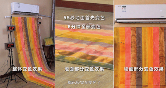 此項挑戰,萬維君用22℃變溫油墨制作了一面五彩感溫變色墻懸掛在空調出風口下方,離地高度1.7米,其余延地面鋪設,模擬用戶在空調使用過程當中的溫度感知情況。這里或許許多網友要問了:為什么是22℃變溫油墨?為什么五彩感溫變色墻的懸掛高度為1.7米?
