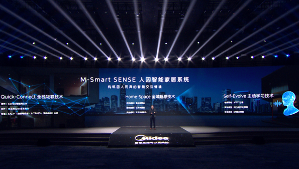 美的M-SmartSense人因智能家居系統包含Quick-Connect全棧物聯技術、Home-Space全域超感技術、Self-evolve主動學習技術,實現聯網快、識別準、服務主動三大優勢,實現了對用戶的24小時全天候呵護。