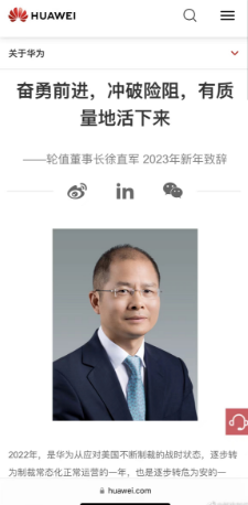 12月30日,華為輪值董事長徐直軍在2023年新年致辭中表示,2022年是華為從應對美國不斷制裁的戰時狀態,逐步轉為制裁常態化正常運營的一年,也是逐步轉危為安的一年。徐直軍透露,預計華為全年實現銷售收入6369億人民幣,經營結果符合預期。