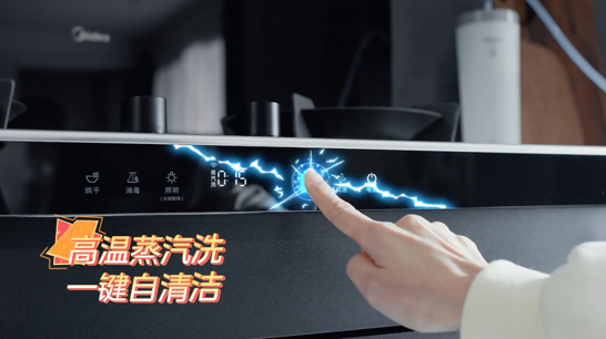 此時,美的新一代蒸汽洗集成灶JD03集煙機、消毒柜、灶具、儲物柜、置物臺于一體,搭載110°C高溫自清潔功能,能夠強力沖刷內部油污,只需一鍵啟動,15min即可重獲新機,且洗凈率達到98.4%以及除菌率達到99.99%,讓集成灶保持潔凈如新,免去手動拆洗的麻煩,讓你省力更省心!