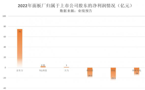 根據相關預測數據顯示,京東方預計2022年歸屬于上市公司股東的凈利潤為75億元到77億元,同比下降70%到71%。TCL科技歸屬于上市公司股東的凈利潤為2.55億元到3.58億元,同比下降96%到97%。天馬微電子歸屬于上市公司股東的凈利潤為1億元到1.3億元之間。