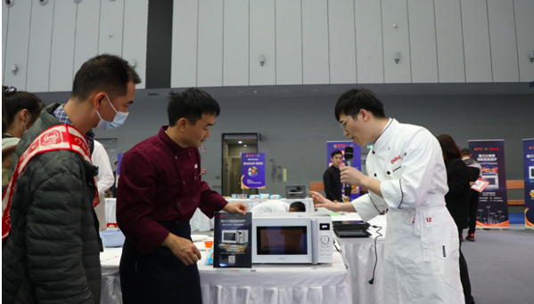 瑪莎拉雞塊、法式奶油意面、斯瓦希里香蕉燉肉……來自世界各地的預制風味在格蘭仕預制菜微波爐新鮮出爐。在預制菜烹飪交流環節,來自希臘、尼泊爾、法國、佛山順德等一流大廚各展身手,使用格蘭仕預制菜微波爐獻上美食盛宴。在專業預制菜烹飪技術的加持下,每一道奇佳風味都挑動著大會觀眾的味覺與視覺“神經”。