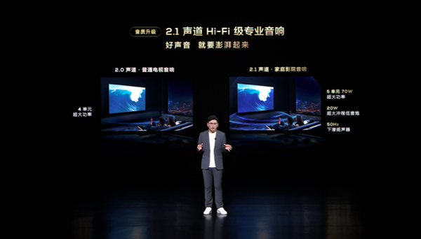 不僅畫質更精美屏幕,TCL Q10G Pro在音響方面同樣大幅升級,以2.1聲道Hi-Fi級專業音響的強勁配置和最高70W的超大功率,為用戶打造高保真音質,臨場感十足。特別是獨立高音、賽道型全頻音響和獨立重低音組合,高音清澈嘹亮,低音渾厚低沉。每一重聲音,都有殿堂級沉浸體驗。