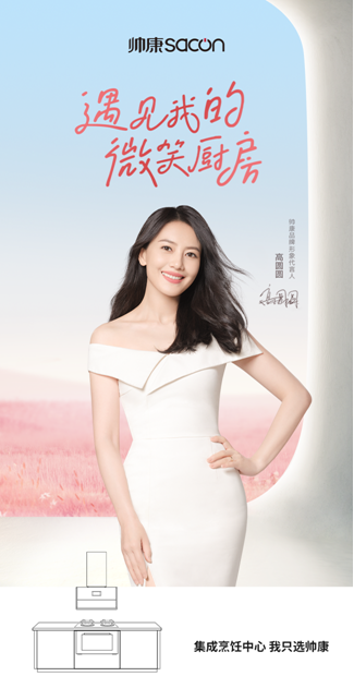 高圓圓微笑的正面形象,與帥康“創造健康美好生活”的企業使命十分相符。從研發出行業第一臺深型吸油煙機,到如今擁有全品類廚房電器,帥康一直憑借專業、前沿的創新技術,通過解決廚房痛點需求為用戶帶來美好生活。
