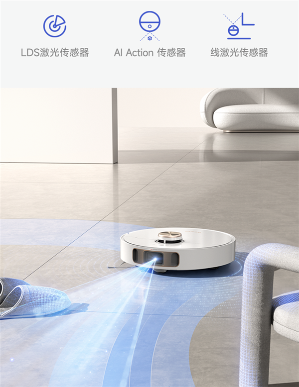 識別多樣的地面材質和復雜的家具陳列對掃地機器人來說絕對是重要挑戰之一,如果沒有可靠的避障技術加持,不僅無法保證良好的清潔效果,嚴重時還會對家具造成損壞。通常掃地機器人會配備雙線激光來識別周圍障礙物,但識別種類及響應速度都較為有限。而追覓S20系列掃地機器人則采用了雙重保險,通過雙線激光+AI的搭配組合,能更加快速、精準地識別超45種障礙物,并及時避讓。無論墻邊、門檻、樓梯臺階還是其他復雜區域,追覓S20系列都能輕松應對,即使暗光環境下也可靈活繞行。
