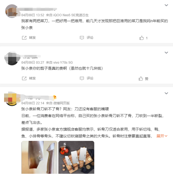 該事件迅速發(fā)酵,即便已經(jīng)過去了半個(gè)多月,關(guān)于張小泉斷刀、不好用的言論仍未平息。