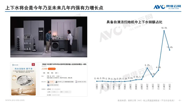 比起其他家電的直播銷售來說,洗地機的產品展示,極具強烈的視覺沖擊,通過直播徹底激發了消費者的強烈購買欲望,因此,占據直播優勢的抖音電商增長飛快,奧維云網(AVC)監測數據顯示,今年一季度抖音電商銷額已占到線上整體的37%。當然在面對高增長的同時,不可忽視的是沖動消費的退貨問題。
