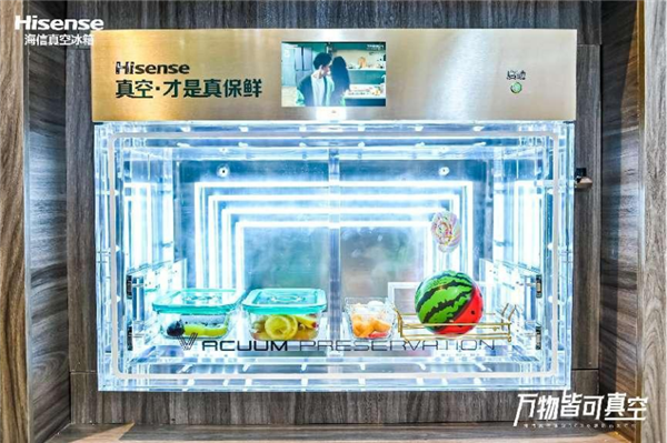 在美食生活體驗區內“坐鎮”的是即將發布的海信真空璀璨503冰箱,它搭載了全新真空休眠科技,助力用戶品質生活。冰箱門體設有真空裝置,用戶可以根據不同食材體量可自行搭配真空袋或真空盒,無論備菜還是食物腌制,都更快更保鮮。同時其兼具內在與外觀,三側零嵌與整體家裝融為一體,真正的做到隱形嵌入,正面不突出,側面不留縫。
