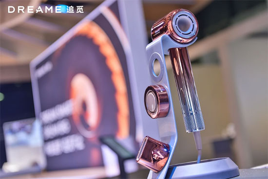 現場還展出了高速吹風機:追覓韶光、極光系列。依托追覓科技高速馬達的核心技術,追覓韶光和極光高速吹風機擁有11萬轉/分鐘高速馬達,40秒可吹干短發,2分鐘吹干及肩發,4分鐘吹干中長發。不僅如此,追覓科技還進一步拓展了吹風機護發的新形態:追覓韶光護發高速吹風機所搭載的追覓科技護發精華彈和3億超高濃度負離子帶來優質護發體驗。