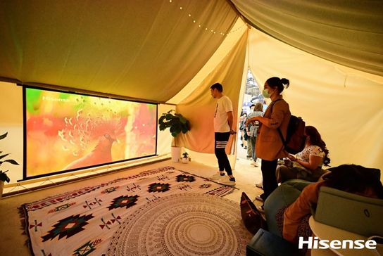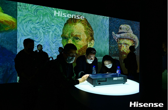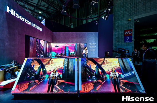 在海信“畫質堡壘”等展區,海信圍繞顯示應用“場景”,以Mini LED、XR LED三面大屏打造了XR虛擬拍攝技術方案,可以替代電影拍攝的綠幕拍攝技術,讓用戶在現場即可入鏡體驗虛擬拍攝的魔幻效果,實現所拍即所得;以真車模型虛實結合,展示了海信在抬頭顯示(HUD)、車載顯示與座艙娛樂系統的布局;以高端激光顯示產品結合藝術家主題影像,打造了“強交互、強體驗、強沉浸”的光影體驗,展示了激光顯示廣闊的場景應用空間……