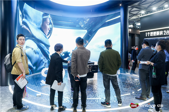 踏進(jìn)這個美輪美奐的“藝術(shù)殿堂”,映入眼簾的是圓弧形大屏正在輪播的S9宣傳短片,搭配頂部圓形屏幕和地面如水波的鏡面裝飾,映射出美好生活的畫卷,給人別有洞天的無限想象,吸引大批觀眾拍照打卡。