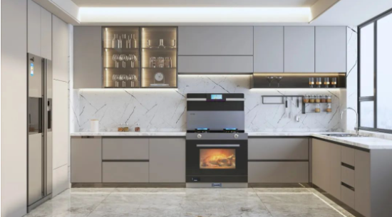 佳歌集成灶,不僅集合煙機、灶具、蒸箱、烤箱、空氣炸鍋、燉鍋、消毒柜、置物臺等多種功能于一體,同時全新運用手機APP智能操控、黑晶磨砂臺面、一體拉伸成型烤瓷內膽、蒸汽直噴技術、三維立體循環烤系統、人字型一體航空煙道、G-TS氣流散熱系統等一系列黑科技創新設計,妥妥的廚房神器,受到了眾多來店消費者的一致好評。
