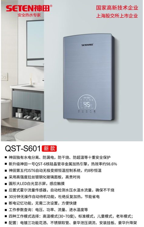 神田在即熱式電熱水器品類中擁有專利技術(shù)——神田一號(hào)QST硅晶第二代非金屬發(fā)熱技術(shù),熱啟動(dòng)快,2秒出熱水。目前金屬杯發(fā)熱體、鑄鋁發(fā)熱體很難達(dá)到這樣的啟動(dòng)速度。硅晶發(fā)熱體具有很強(qiáng)的導(dǎo)熱性能,熱效率高達(dá)98.6%。耐腐蝕,熱穩(wěn)定性好,綜合性能領(lǐng)先于鑄鋁發(fā)熱體。