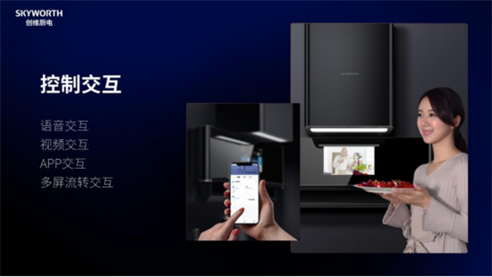 而創維則不同,在審美上,創維緊扣彩電的超薄趨勢,將超薄和懸浮的概念帶進了廚房,并且為煙機安置音箱,打造強大的視聽體驗;在邏輯上,創維本身是以電視起家,多年來牢牢掌握客廳中心的“話語權”,在廚房中構建以煙機為中心無疑有豐富的經驗,比如創維Swaiot智控系統等;在布局上,在家電物聯的浪潮下,創維早已開始默默拼組全品類智能家居,而廚電幾乎是其版圖中的最后一塊,而我們也已經看到了多屏流轉。