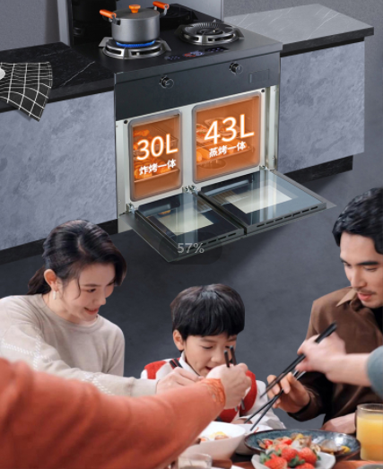 不止邊煮邊炒,還能同時邊蒸邊烤。大容量蒸烤箱,雙獨立腔體結構,美味烹飪互不串味。快速搞定一桌菜。