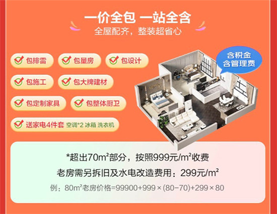 5月18日,京東攜手愛(ài)空間整裝推出自營(yíng)裝修業(yè)務(wù),針對(duì)新婚人群滿(mǎn)足顏值和品質(zhì)需求,針對(duì)學(xué)區(qū)房人群優(yōu)先滿(mǎn)足收納功能,針對(duì)銀發(fā)一族進(jìn)行適老化改造升級(jí)。70平米戶(hù)型新房裝修產(chǎn)品,原價(jià)119900元,限時(shí)直降20000元,京東價(jià)只需99900元,還限量贈(zèng)送家電四件套,包括2臺(tái)空調(diào)、1臺(tái)冰箱和1臺(tái)洗衣機(jī)和京東PLUS家電特權(quán)卡。同時(shí)還將排雷量房、品質(zhì)施工、整體廚衛(wèi)、1+N全案設(shè)計(jì)、大牌建材、定制家具全都打包在內(nèi),為用戶(hù)提供一價(jià)全包、一站全含的超完整解決方案,還有職業(yè)管家全程托管,再加上100%直管工人保障施工,電子簽約、在線監(jiān)工、一站選材、水電VR、物流追蹤、在線驗(yàn)收等一部手機(jī)就能搞定,讓用戶(hù)更省心。另外,消費(fèi)者還可以享受9大特權(quán)保障,包括對(duì)自有產(chǎn)業(yè)工人進(jìn)行資格認(rèn)證,隱蔽工程雙10年質(zhì)保、閉口合同0增項(xiàng)、京東資金托管、48天新房整裝延必賠、意向金隨時(shí)退等,讓用戶(hù)裝修更省心。