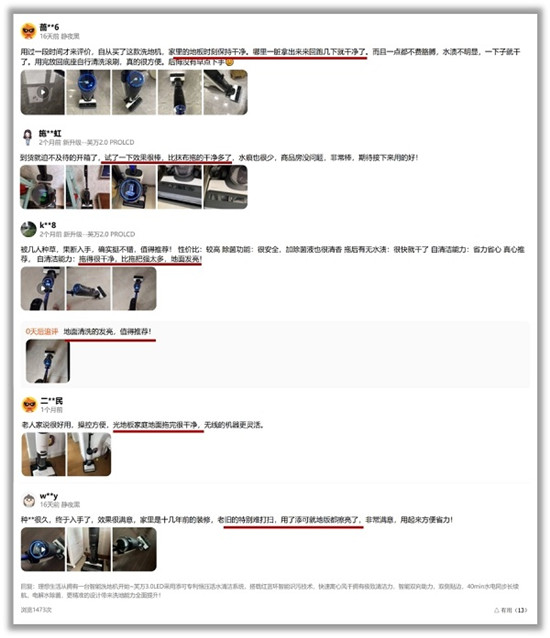 當用戶主動分享產品使用體驗,為產品和品牌“搖旗吶喊”時,產品質量好不好就一目了然。對添可芙萬智能洗地機而言,從芙萬1.0到今年的新品芙萬Chorus,已擁有10余款產品,5星好評永遠是絕大多數,還有很多用戶會給出更細致的產品使用感受,分享自己的經驗,并主動為添可芙萬的產品質量打Call。