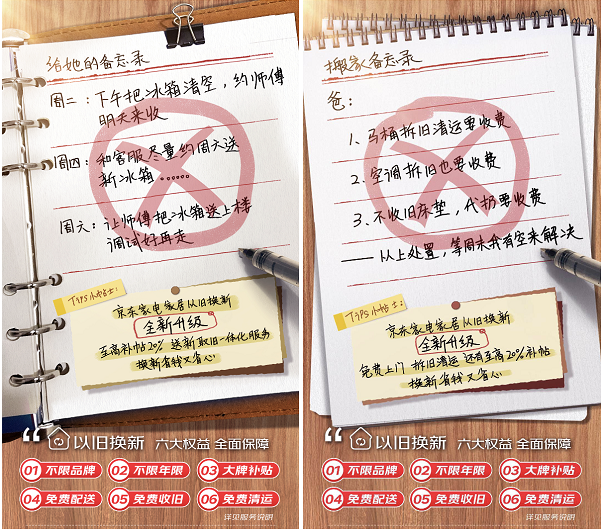 今年,京東更是在家電家居以舊換新上進行服務升級,率先開通了床墊、馬桶等消費者過往以舊換新時容易被“套路”的大件家具、建材品類,并提供免費上門拆舊清運服務,再次領先行業。特別是在618期間,京東針對家電家居品類,推出以舊換新至高補貼20%、大部分家電家居品類送新取舊一步到位,并給到消費者免費上門、免費拆舊、免費搬運的“三免服務”。其中,電視、冰箱、洗衣機、床墊、馬桶等品類可為消費者提供送、裝、拆、清的一體化服務,全面升級用戶服務體驗。