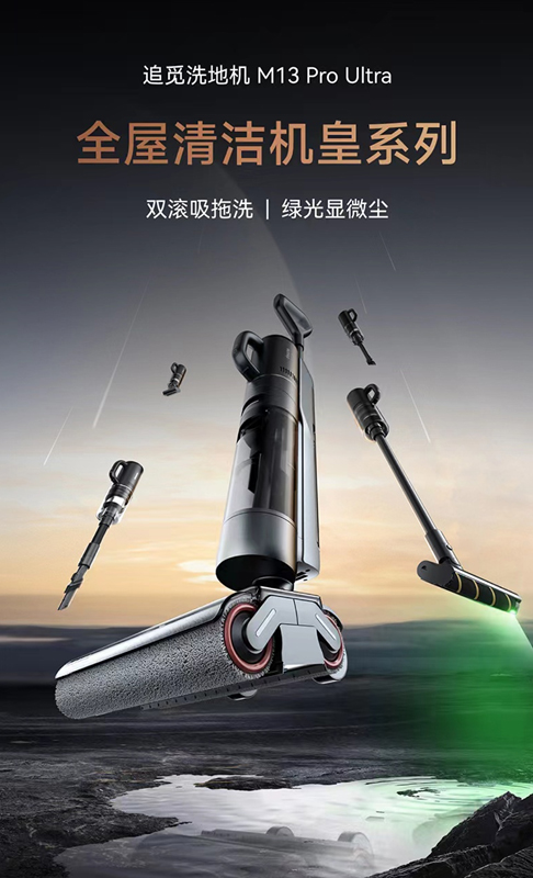 據悉,618期間,追覓科技推出了行業首款綠光顯塵洗地機M13 Pro Ultra,支持“一機四用”,兼具洗地機、吸塵器、隨手吸及除螨儀的功能,全面覆蓋全屋立體空間深度清潔的各項需求。行業人士分析稱,追覓創造性地將綠光顯塵應用于洗地機,通過放大微塵顆粒,使得地面清潔更加徹底,滿足了過敏人群、養寵人群及有娃人群對于深度清潔的需要,有望成為引領行業創新的又一爆品。