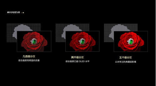 眾所周知,背光分區數量的多少,在很大程度上就決定著電視控光能力的高低,控光能力越強,像是在表現一些黑場畫面的時候,就不會出現光暈的問題,這樣就能更好地呈現出優質的電視畫面。而峰值亮度的表現,則主要決定電視能夠展現的亮度層級,一方面更高的峰值亮度表現,能在播放HDR視頻內容的時候,使其獲得更為優秀的高光表現,帶來更接近肉眼真實所見的效果,同時同一畫面中的暗部細節也能得到相應的保障,這樣才能使得電視的綜合畫質能夠有所提升。