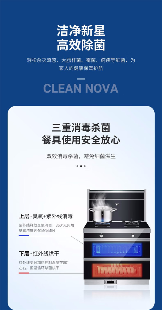 對(duì)于特定空間或是指定物品的消毒,我們往往采用噴灑酒精或者是用一些特定消毒液擦拭的措施。但是,餐具與一般的空間和物品完全不同,其使用頻次高且相對(duì)固定,因?yàn)樾枰肟冢膊荒苡镁凭认緞R虼耍覀儽仨氁慌_(tái)專(zhuān)業(yè)的消毒設(shè)備,比如風(fēng)田AL90煙灶消集成灶。