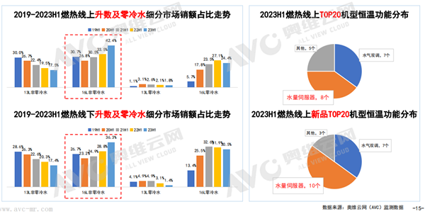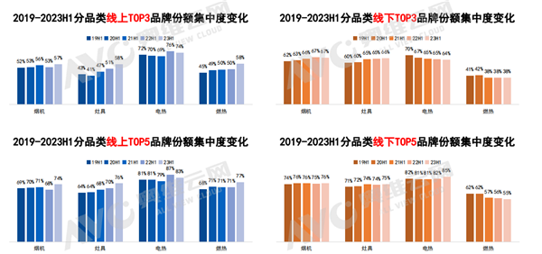 就整體而言,存量市場分秒必爭,淘汰賽開啟,頭部品牌集中度提升也有效地拉動產業升級。其中,電熱線上top5品牌份額占比達到了83%,線下top5品牌份額占比達到了85%;燃熱線上top5品牌份額占比達到了77%,線下top5品牌份額占比達到了55%。