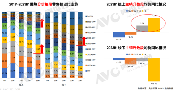 價格段方面,線上市場3000元以上價格段呈現增長趨勢;線下市場4000元以上價格增長顯著,其中,4500元以上價格段零售額占比達到20.7%。