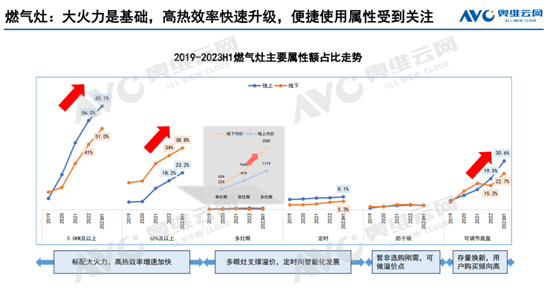 除了集成烹飪中心外,產品端內卷已經嚴重,我們以油煙機和燃氣灶為例,以往高端才配置的吸力、風壓、變頻等參數和技術已經成為中低端油煙機的標配,而大火力則成為了燃氣灶的基礎,大家開始追求高熱效率。