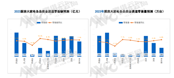 從數據上來看也確實表現出了增長性,奧維云網監測數據顯示,2023年上半年集成烹飪中心-灶蒸烤部分線上市場零售額同比增長286.4%,線下市場同比增長87.8%。顯然,在存量市場下,集成烹飪中心扮演的角色將越來越重要。