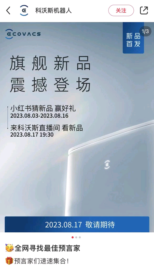 盡管目前還沒有更多關于科沃斯新品信息,但電商預訂頁面都上了,相信很快官方就會開始全面預熱,釋放新品的參數信息。我們也會持續關注。