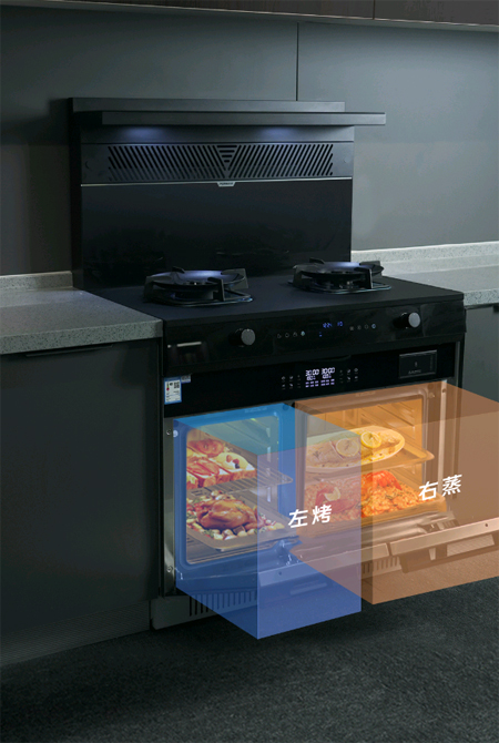 培恩E5集成灶搭載變頻溫場(chǎng)系統(tǒng),蒸烤箱內(nèi)置溫感探頭,精準(zhǔn)溫控,烹飪安全又健康!更是集蒸、烤、炸等多種功能于一身,與家人一起享受美食。