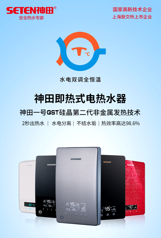 神田集團總裁黃建岳介紹,水電雙調全恒溫技術是極具差異化的技術,也是即熱式電熱水器行業的終極恒溫技術,是行業未來的發展方向。
