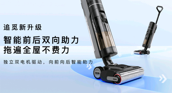 此外,還有用戶反饋目前市面上的洗地機因配置了水箱,整體偏重,并且移動阻力大,移動過程稍顯費力。為了讓用戶在使用過程中更省心省力,追覓H30搭載了新升級的智能前后雙向助力,采用獨立雙電機驅動,讓用戶能夠更輕松便利地前后拖拉,移動拐彎。
