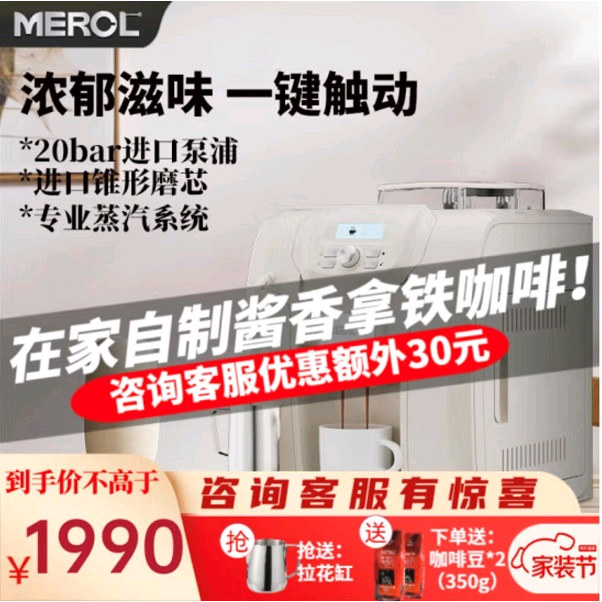 近幾年咖啡飲品市場蓬勃發展,我國消費者人均咖啡攝入杯數已達9杯,其中一二線城市消費者咖啡滲透率達到67%,國內咖啡市場的需求日益提高。咖啡品類橫空出世的同時,家用咖啡機的銷量也隨之增高,美宜儂咖啡機作為其中翹楚也受到了不少用戶歡迎。其中,美宜儂20Bar全自動咖啡機擁有20bar萃取壓力、92-96攝氏度恒溫萃取、快速預熱浸泡、高壓蒸汽打發、旋鈕操作界面、開機自動清潔6大功能,只需3分鐘就能獲得一杯意式咖啡,哪怕時間不夠用也能不用早起折騰,一鍵輕觸就能快速啟動。更為重要的是,還可以連續制作不排隊,不管是意式濃縮、黑咖啡,還是奶咖都能快速制作,節省時間。現在來京東家電家居秋季家裝節購買,立減1000元,京東價只需1990元,咨詢客服還送拉花缸、咖啡豆等。