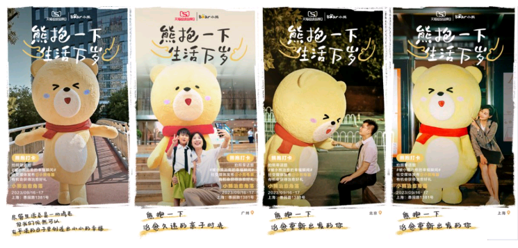 9月13日-9月17日期間,小熊電器在廣州、北京、上海等地為每個被生活小情緒所困住的年輕人,特意舉辦熊抱快閃巡游并設置“小熊治愈角落”快閃店,意在喚起年輕人感受幸福、創造幸福、分享幸福的能力。在這場治愈系活動中,小熊電器從年輕人的立場出發,用默默陪伴的方式,與年輕人建立了情感的“引力場”,助他們發泄生活情緒,共享幸福。