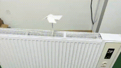 小編所在的評測室大約為10㎡的空間,將居里夫人第2代移動電壁掛爐開到最大,用溫濕度計測試其制熱效率。