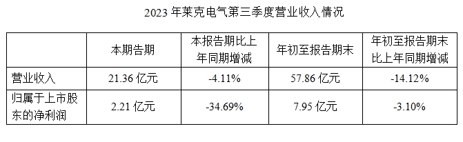 第三季度實現營業收入21.36億元,同比下滑4.11%;歸母凈利潤2.21億元,同比下滑34.69%;扣非歸母凈利潤2.25億元,同比下滑30.83%。