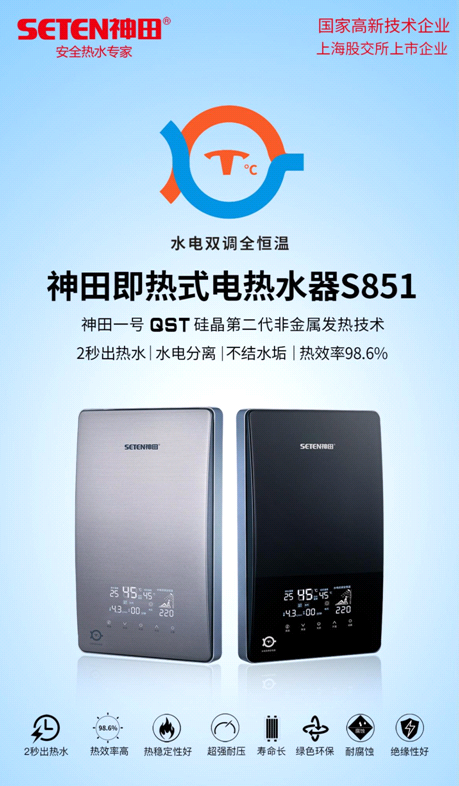 當大部分同行都在主推小容量單模速熱時,神田主推三模速熱與大容量速熱;當大部分同行都在主推速熱式產品時,神田就開始著手布局即熱式產品的開發,前兩年正好迎來即熱式行業新的爆發期,神田又比同行領先一步。當很多同行把主要精力放在幫其他廠家OEM時,神田堅定地走自己的品牌路線,這也奠定了神田穩中求進的發展步伐。