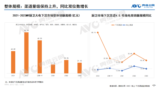 比起彰顯生活品味,下沉市場(chǎng)消費(fèi)者更注重實(shí)用性消費(fèi),廚衛(wèi)剛需品類(煙灶電燃)日常使用頻次高,是下沉市場(chǎng)消費(fèi)群體的主要選購(gòu)對(duì)象,增長(zhǎng)較為迅速,且對(duì)廚電套餐的選購(gòu)意愿較強(qiáng)。據(jù)奧維云網(wǎng)(AVC)下沉渠道監(jiān)測(cè)數(shù)據(jù)顯示,2023年1-9月,廚電套餐、油煙機(jī)、燃?xì)庠、電熱、燃熱銷額規(guī)模分別為銷額12.2億元、7.1億元、3.0億元、23.8億元、11.7億元,分別同比增長(zhǎng)58.1%、11.0%、21.0%、18.1%、30.0%。