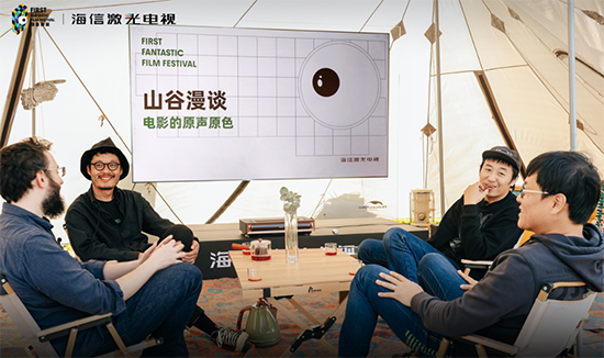 在海信激光電視為2023年FIRST驚喜影展打造的公共空間——山谷放映廳里,FIRST青年電影展COO高一天、電影《八月》導演張大磊、電影《少年的你》調色指導李大衛、電影《消失的她》聲音指導李丹楓相對而坐,針對“電影的原色原聲”以及“電影人的理想客廳”話題展開漫談。