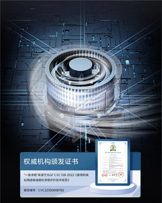 美的無煙感集成灶搭載鏡像直排風道,并通過6重油煙分離凈煙設計,打造遠超權威認證水準的凈煙效果。在24m³/min大風量和1080Pa變頻強壓下,智能感應暢快吸排油煙,讓烹飪時呼吸區域的PM2.5濃度下降到50μg/m³。經認證,搭載凈煙科技的多款美的無煙感油煙機“符合JSGF CVC158-2022《家用和類似用途吸油煙機凈煙評價技術規范》的要求。