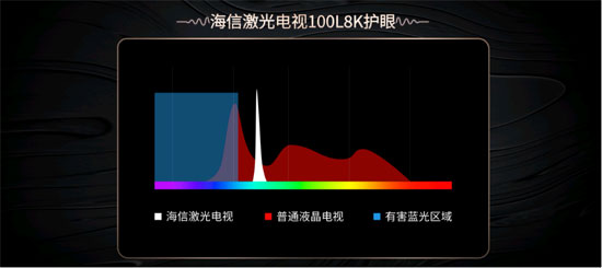 在這個離不開電子設(shè)備的時代,護眼已經(jīng)成為全民關(guān)注的熱點話題。海信100英寸激光電視L8K采用純凈激光光源,避開有害藍光傷害最大的435-445nm波段,從源頭解決用戶最擔(dān)心的有害藍光問題。