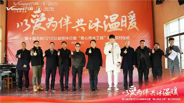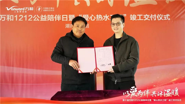 在隨后的交付儀式上,萬和電氣董事長盧宇聰與南岳廟九年義務制學校校長周輝登臺,在現場領導、來賓及現場師生的見證下簽下施工交付清單,宣布南岳廟九年義務制學校的“愛心熱水工程”正式交付使用。