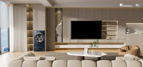 相較厚重的傳統洗衣機產品,小天鵝圍繞當下用戶對于空間美學的核心訴求,小天鵝雙洗站采用一體超薄嵌入式設計,可完全嵌入600mm家裝主流柜體,纖薄機身與櫥柜表面0落差。此外,一機解決衣物洗護、地面清掃、地面清潔三種場景的同時,可避免掃地機器人、掃拖機器人占用客廳空間的狀況。僅需只需一根電源線、一根進水管,小天鵝雙洗站即可安裝運行,無需進行水電路改造,便于安裝、利于美感。