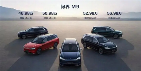 問界M9采用六座均權座椅,前、中、后排配置統一,并將獨立的充電口、杯托、手機槽和HUAWEI MagLink插口悉數上車。目前提供4個版本,增程版Max、增程版Ultra;純電版Max、純電版Ultra。售價區間在46.98萬元至56.98萬元之間,起售價低于此前50至60萬元的預售價。