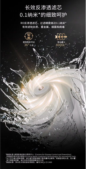 凈心凈化水體。西門子家電新品嵌飲機搭載反滲透濾芯,過濾精度達到目前市面上最高的0.1納米級,有效去除水中重金屬、細菌、病毒等有害物質,減少自來水二次污染的可能,讓每一滴水更加潔凈安心。此外,新品在保證凈化高質量的同時還提升了效率,機體高達67%以上的產水率,超過國家新一級水效標準,實現高效凈水。