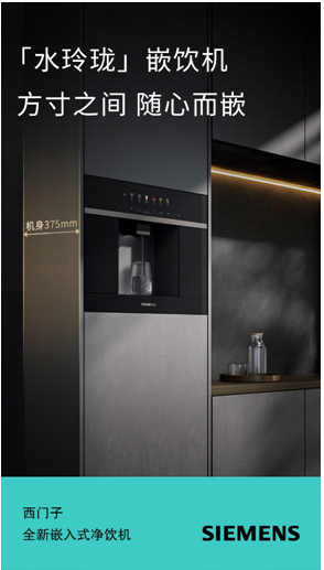 在消費者對健康品質生活日漸重視的當下,全新西門子「水玲瓏」嵌入式凈飲機成為行業中的集大成者,聚合“四心”優勢于一身,以納米級濾芯精度的凈心凈化、精準溫控的暖心直飲與沁心冰爽、晶御智能加持下的安心保障,為飲水健康保駕護航。隨著該款新品重磅上市、走進更多家庭的生活空間,西門子家電也將繼續提升消費者的凈水直飲體驗,成就家家戶戶的質感生活美好愿景。